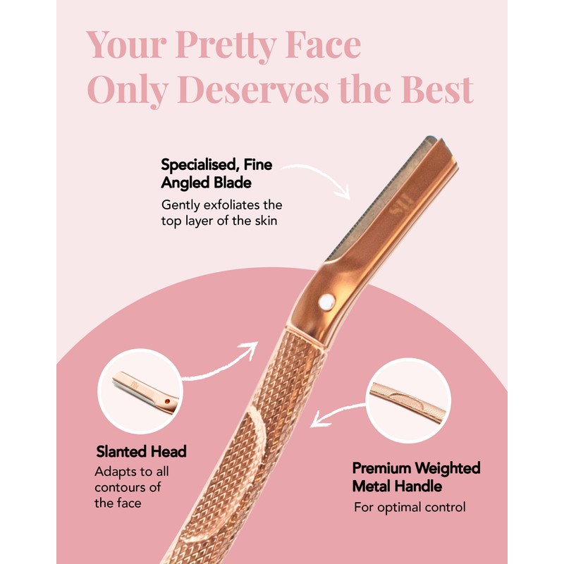 - Designed for Women: The premium weighted handle of our facial hair remover for women features a slanted head for optimal control. This ergonomic facial razor also makes it easy to navigate around the eyebrows, upper lip, and peach fuzz.