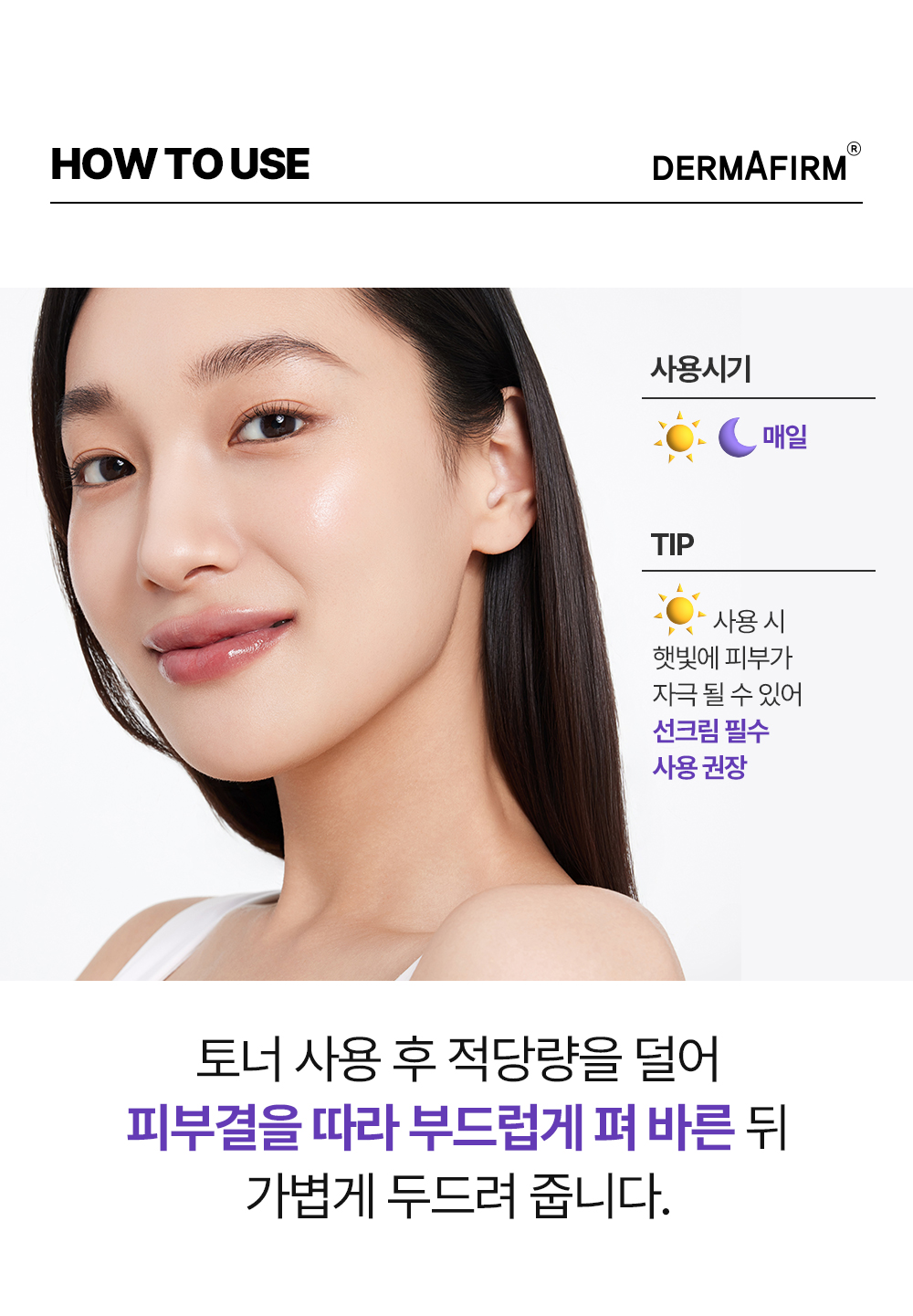 | 사용방법 | 토너 사용 후 적당량을 덜어 피부결을 따라 부드럽게 펴 바른 뒤 가볍게 두드려 줍니다. 앰플을 사용하는 기간에는 햇빛에 의해 피부가 자극받을 수 있으니 선크림을 꼭 사용해 줍니다. |