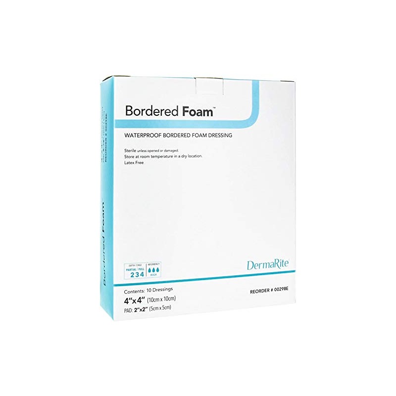 DermaRite Bordered Foam, 4 x 4, Pack of 10