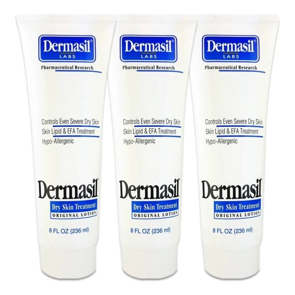 Dermasil Tratamiento para piel seca, fórmula original, tubo de 8 onzas (paquete de 3).; Úsalo como hidratante diario.; Ayuda a calmar y suavizar.; Restaura el equilibrio de la humedad.; Ideal para estrías. Uso como hidratante diario ayuda a calmar y suavizar restaurar el equilibrio de la humedad