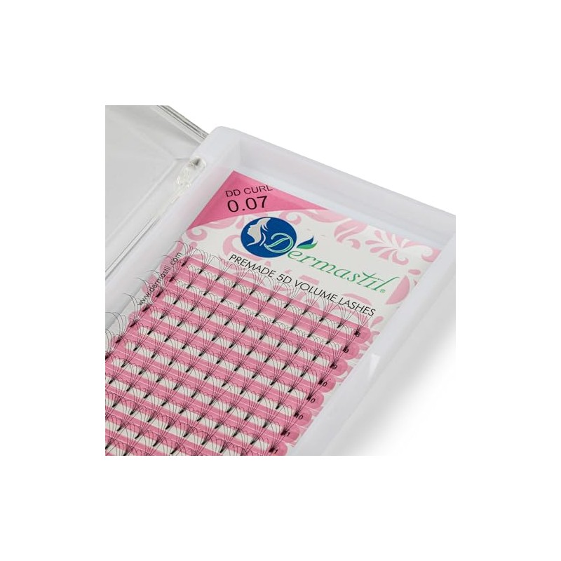 Dermastil 5D Premade Handmade Volume Eyelashes, DD Curl, Thickness 0.07 mm, Ready Fan without Knots for Eyelash Extension, PBT Vegan, 16 Strips Box (Mix Lengths)
