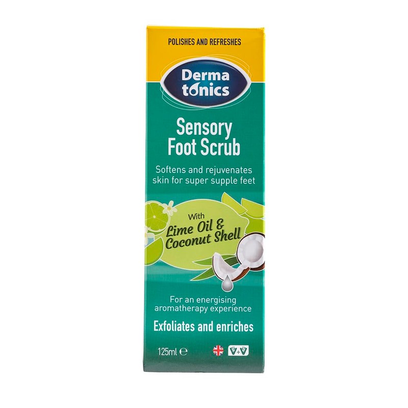 Dermatonics Sensory Foot Scrub | Exfoliates and Enriches | With Essential Lime Oil and Coconut Shell | Suitable for Vegan | Gently Buffs Away Hard Foot Skin | 125 ml