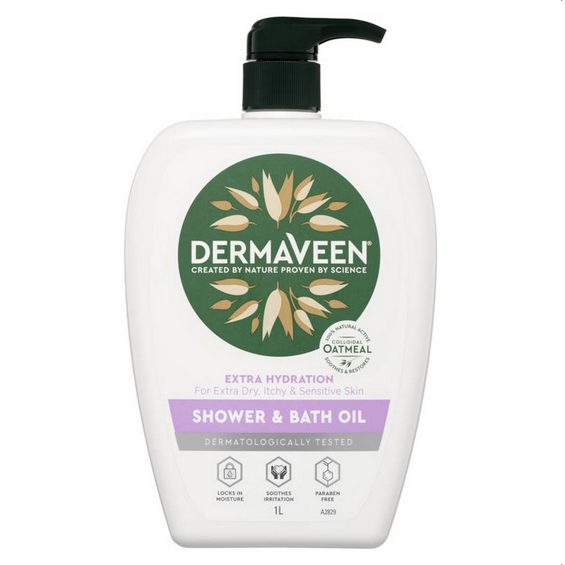 DermaVeen Extra Hydration Shower & Bath Oil for Extra Dry, Itchy & Sensitive Skin is dermatologically tested. It soothes irritation, locks in moisture and is paraben-free.
