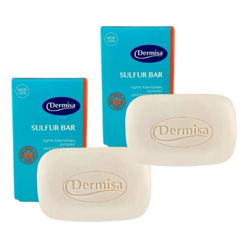 El Dermisa Barra de Azufre (Pack 2 Piezas) es un jabón medicado para pieles grasas y con acné, que limpia, controla el sebo y previene brotes gracias al azufre. Se usa diariamente y se debe consultar a un dermatólogo si hay irritación o condiciones preexistentes.