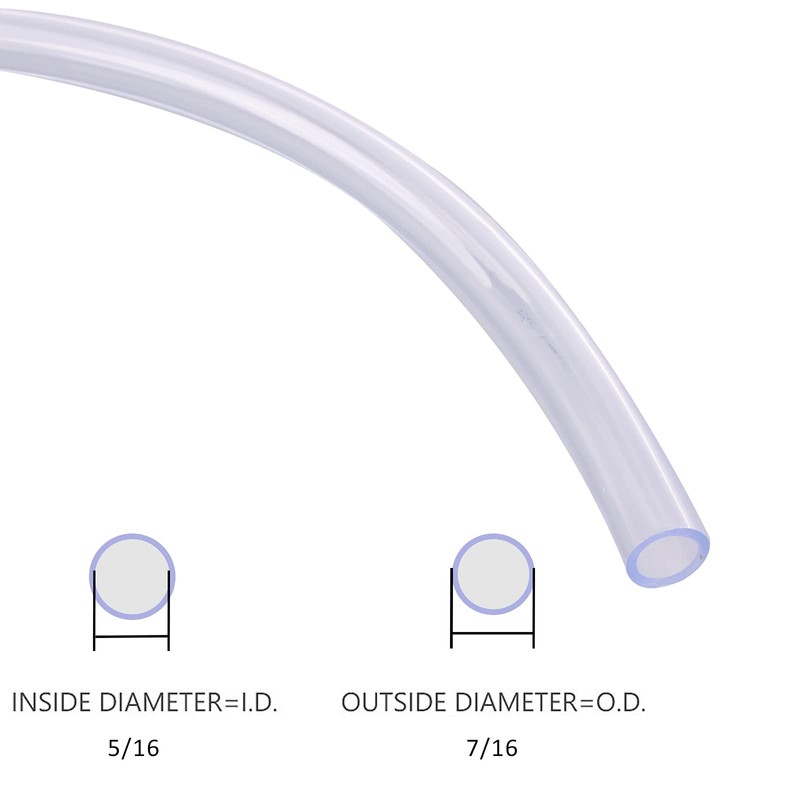 - Size - Plastic PVC tubing, 5/16 inch ID X 7/16 inch OD Length:25 Feet