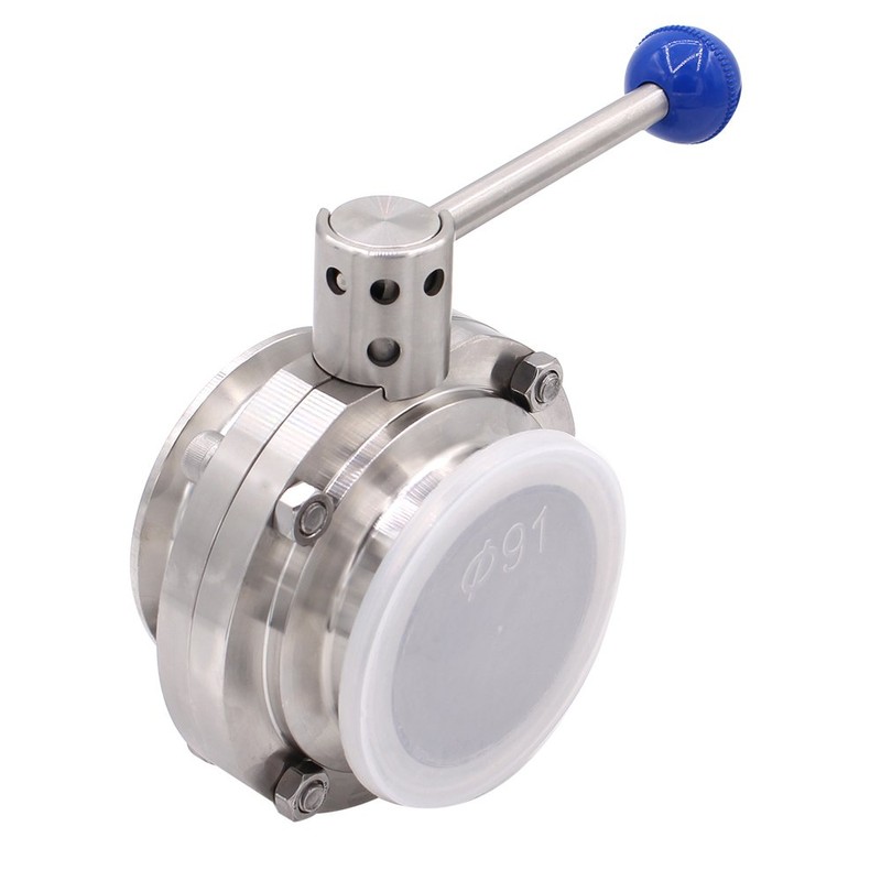 3 inch Sanitary Butterfly Valve:The pull style handle allows you to set the valve in three different positions simply by pulling and turning. 100 Percent tested / 100 percent inspected. 100 Percent pressure hydraulic tested for reliability. Wetted surfaces polished to 3-A standards. Actuation available: double-acting, air-to-spring, electric.