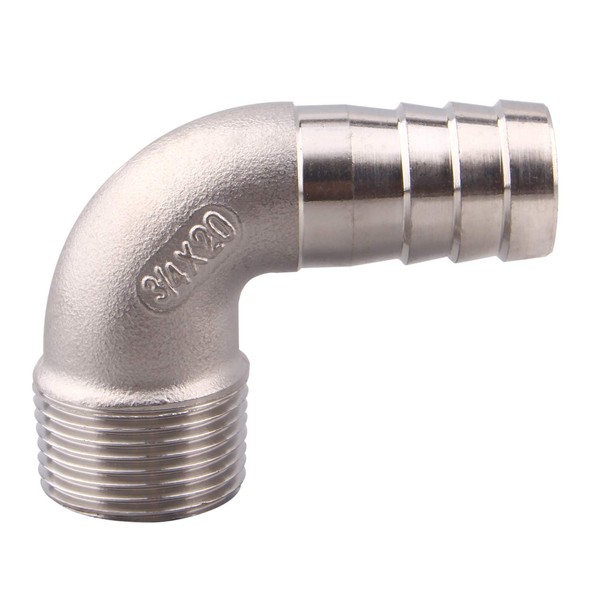 DERPIPE 3/4" Hose Barb x 3/4" Male NPT Stainless Steel 90 Degree Elbow Barbed Thread Pipe Fitting