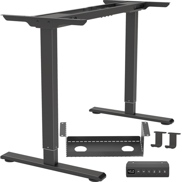 Dual Motor Standing Desk Frame, Electric Adjustable Legs, Workstation Desk Base, Sit stand desk frame, 3 Memory Height Settings, with Cable Management Tray, Headphone Hook