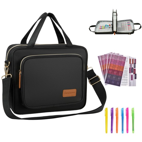 Bible Cover for Women – Large Bible Case with Zipper, Floral Journal Bag with Handle & Shoulder Strap, Christian Gift for Bible Study & Church, Black