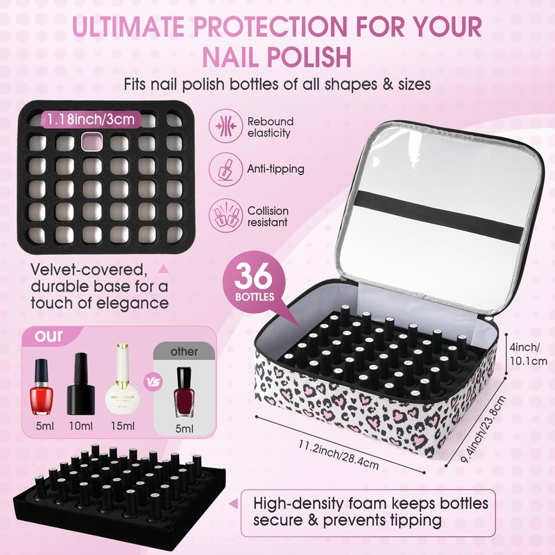 - 【Durable, Protective & Travel-Friendly Design】 Crafted from water-resistant and easy-to-clean fabric, this nail polish storage case features reinforced side panels and collision-resistant foam inserts. Your nail supplies are protected from tipping, breaking, or leaking. Smooth zippers and an anti-theft back pocket offer additional security while on the go