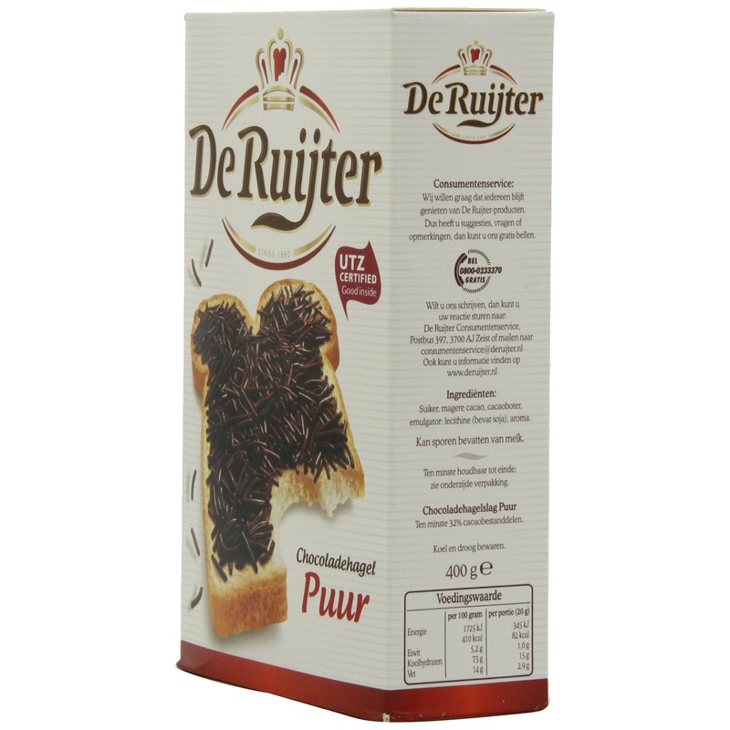Deruyter chocoadehagel puur (dark chocolate sprinkles), 14-ounce boxes (pack of 3) are a Dutch favorite, these dark chocolate sprinkles are served by sprinkling over bread with butter, or can be used for cake decorating. (Imported from Holland)
