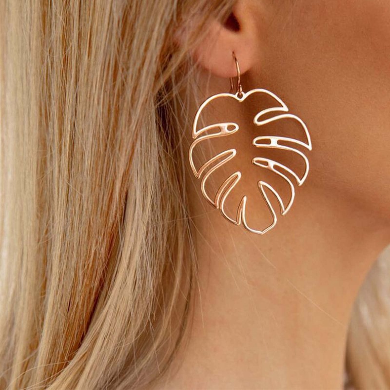 Dervivea Bohemia Palm Leaf Earrings Gold Hollow Leaf Dangle Earrings Monster Leaf Earrings Tropical Leaves Earrings Jewellery for Women and Girls, Metal