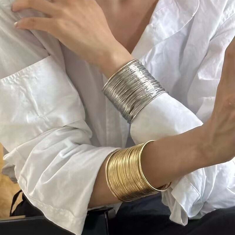 Dervivea Punk Wide Wire Bracelets Silver Wrist Cuff Wrap Bracelet Wire Cuff Bracelet Multi Wire Wrapped Bracelets Adjustable Open Armlet Bracelets Jewelry for Women
