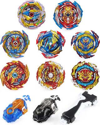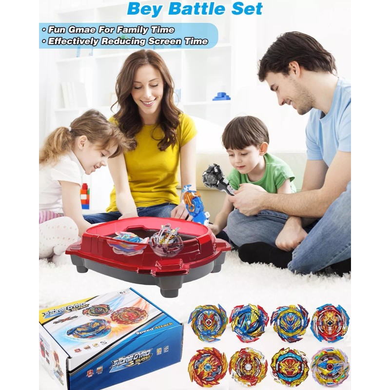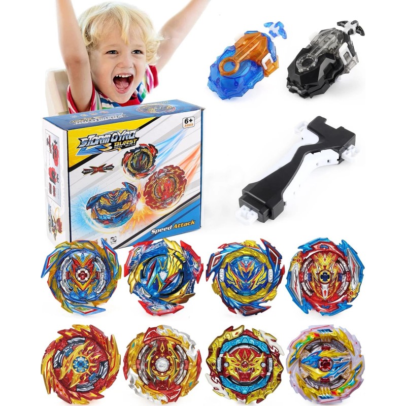 - Battle Game Fun with FriendsThis bey blade battling top set comes with 8 x Burst Tops, 8 x Sets of Stickers, 2 x Bey Launchers, 1 x Grip, making children more choices to play with. They can also share toys with friends which promotes interaction between each other. It's a great gift idea for kids aged 6+