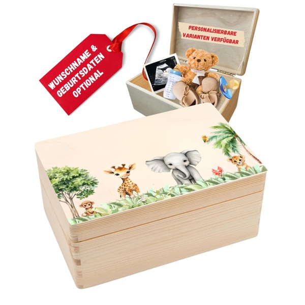 DEschenk Baby Memory Box - Gift for Birth, Baby Memory Box in Various Sizes (Safari, No Personalisation)