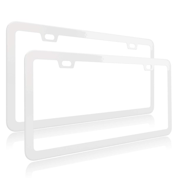 Deselen White License Plate Frame, Metal Thin Stainless Steel with 2 Holes Screw Cap, 2 Pack (White)