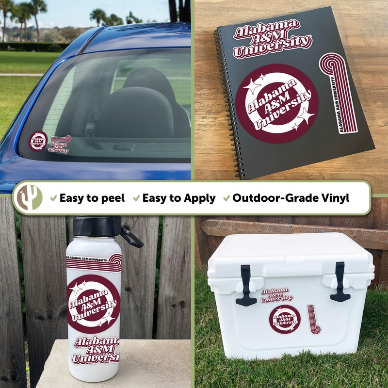 Desert Cactus Alabama A&M University Stickers Bulldogs AAMU Vinyl Decals Laptop Water Bottle Car Scrapbook Sheet (70s 4inch)
