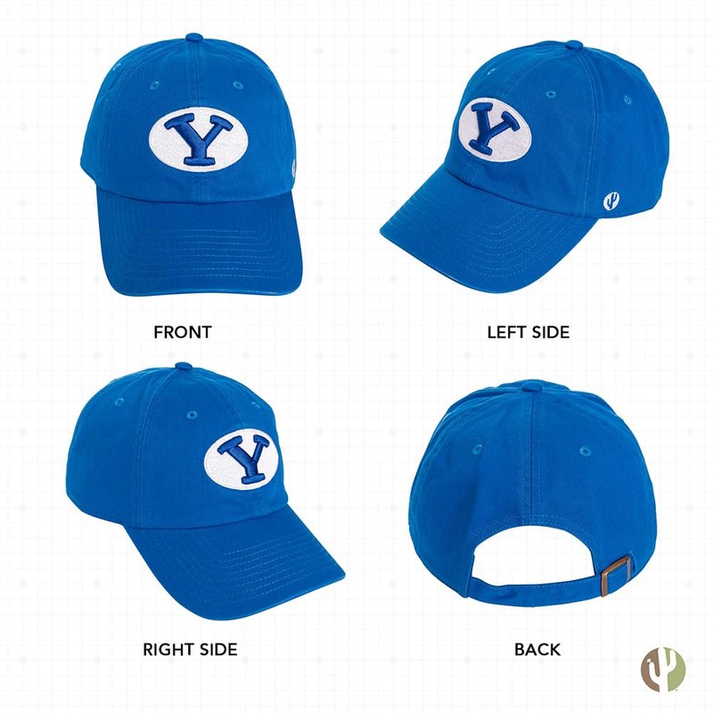 Desert Cactus BYU Brigham Young University University Baseball Hat Cougars Cougs Brimmed Embroidered Hats Cap Adjustable Cloth Strap Adult (Style A1) Blue