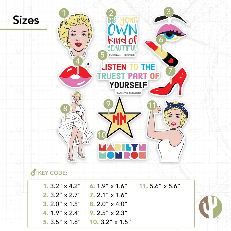 Desert Cactus Marilyn Monroe Sticker Sheet Vinyl Decal Crew Laptop Water Bottle Car Scrapbook (Type 2) (Version 8)