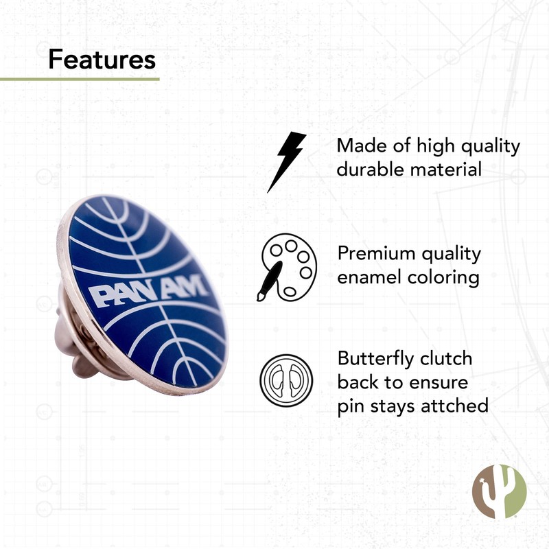 - Premium Quality - Made of enamel, these lapel pins feature a Pan Am mark with vibrant colors. Each lapel pin is perfect to attach to a hat, clothing, bag or a variety of other items.