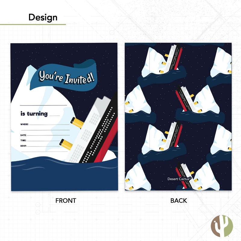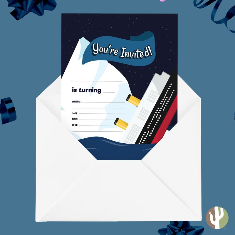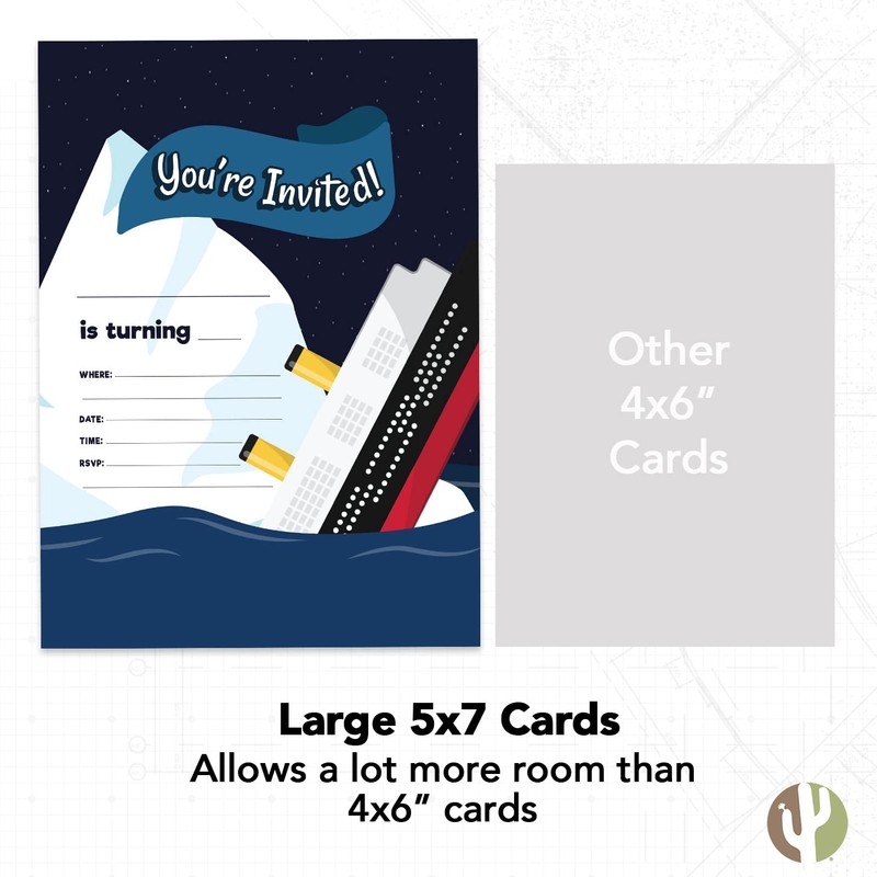 Desert Cactus Titanic Style 2 Happy Birthday Invitations Invite Cards (10 Count) With Envelopes Boys Girls Kids Party (10ct)