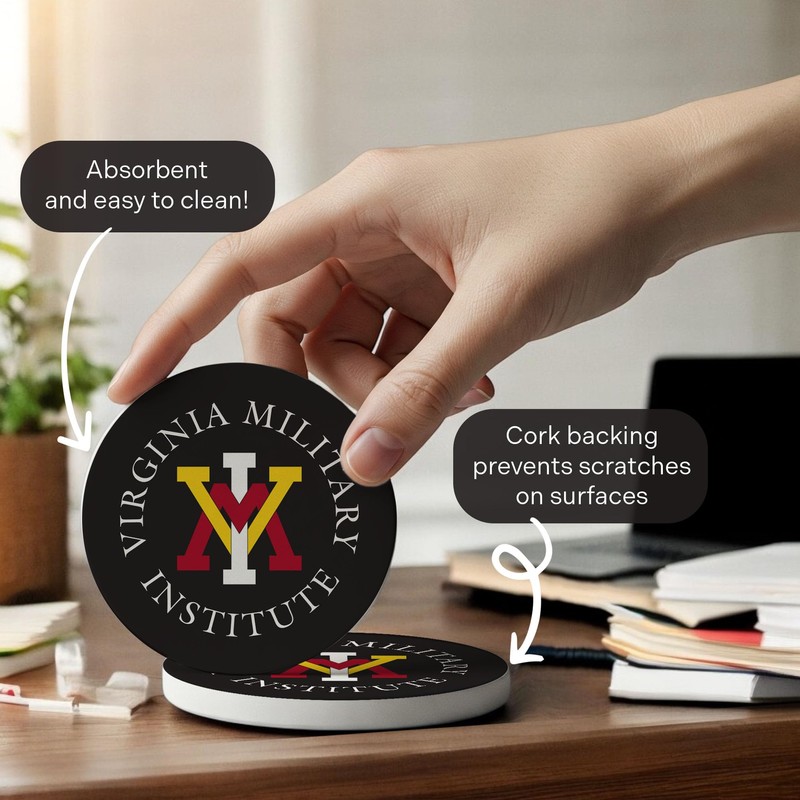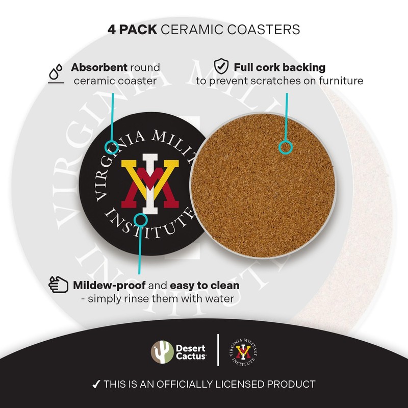 Desert Cactus Virginia Military Institute Ceramic Coasters 4 Pack Keydets VMI Absorbent Drink Coasters with Cork Backing (Design A)