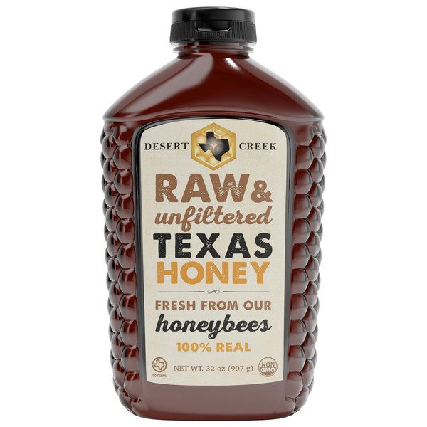 Desert Creek Honey - 100% Unfiltered, Pure, Raw Honey from Texas - Natural Sugar Substitute - Two Pounds of Unprocessed, Unpasteurized American Honey - Harvested by Our Own Beekeepers