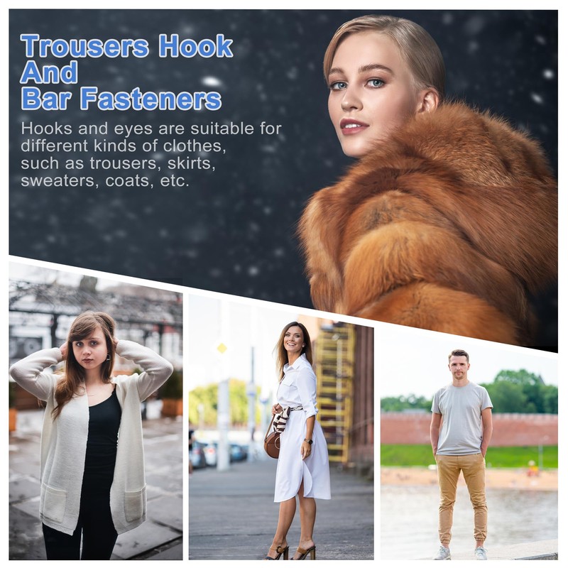 - Hooks and eyes are suitable for different kinds of clothes, such as trousers, skirts, sweaters, coats, etc. Whether it is sewing new buttons or repairing damaged clothes.