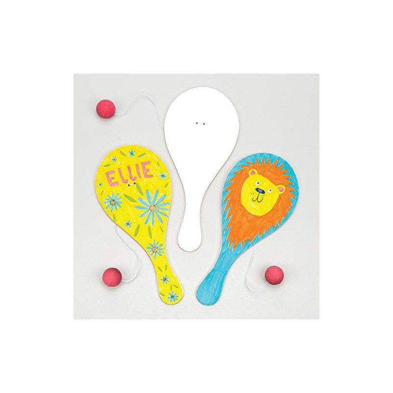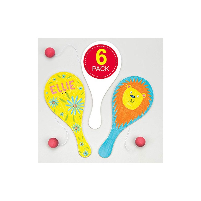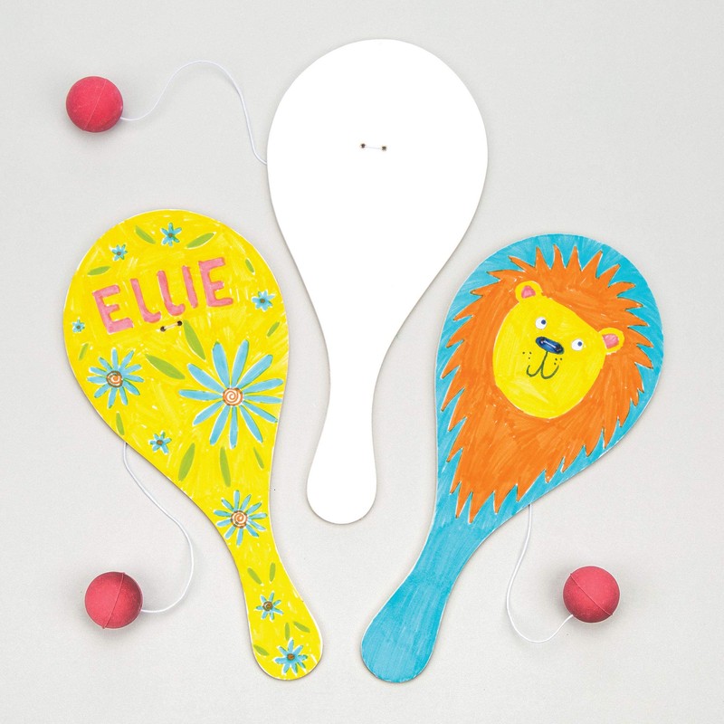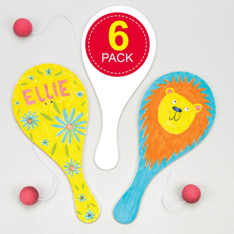 Design a Wooden Biff Bat Bat with Elastic & Ball Attached, for Children to Paint & Personalise & Play with (Pack of 6)