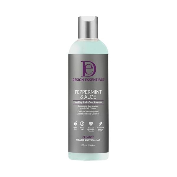 Design Essentials Peppermint & Aloe Therapeutics AntiItch Shampoo Control Scalp Flaking & Itching, 12 Fl Oz