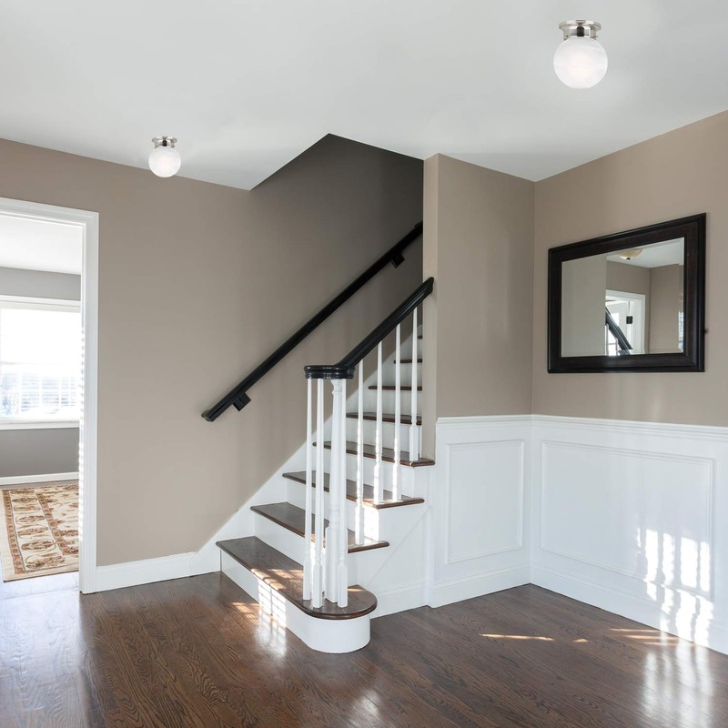 - IDEAL FOR kitchens, bedrooms, hallways, dining rooms, foyers, laundry rooms, closets and more, this traditional ceiling light has a modern satin nickel finish with a dome-shaped white alabaster glass shade