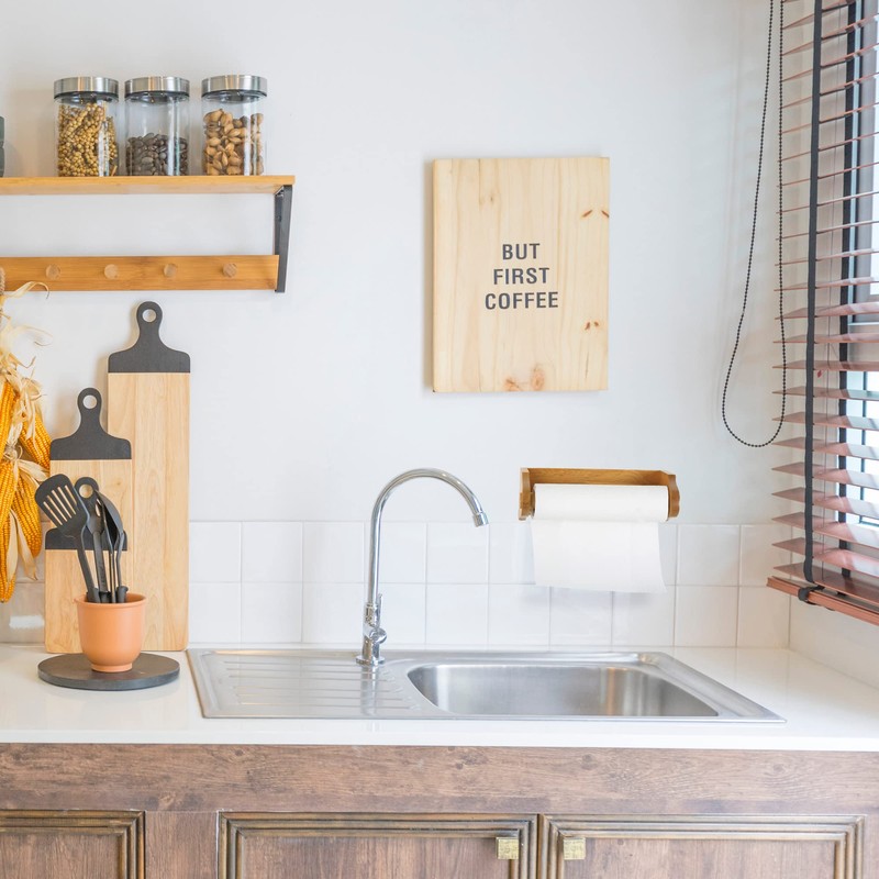 - Paper towel holder is made of stunning honey oak wood, with smooth lines and a traditional design