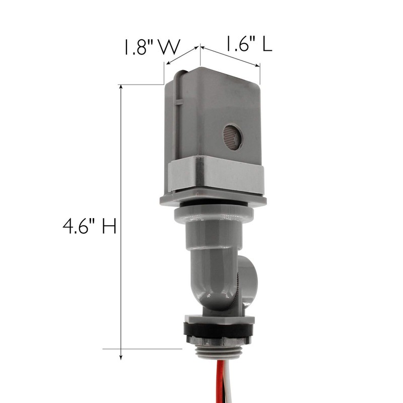 - Installs on standard outdoor light fixtures or electrical boxes for efficient dusk-to-dawn ON/OFF control; ½ in. threaded stem with zinc alloy locking nut and rubber gasket