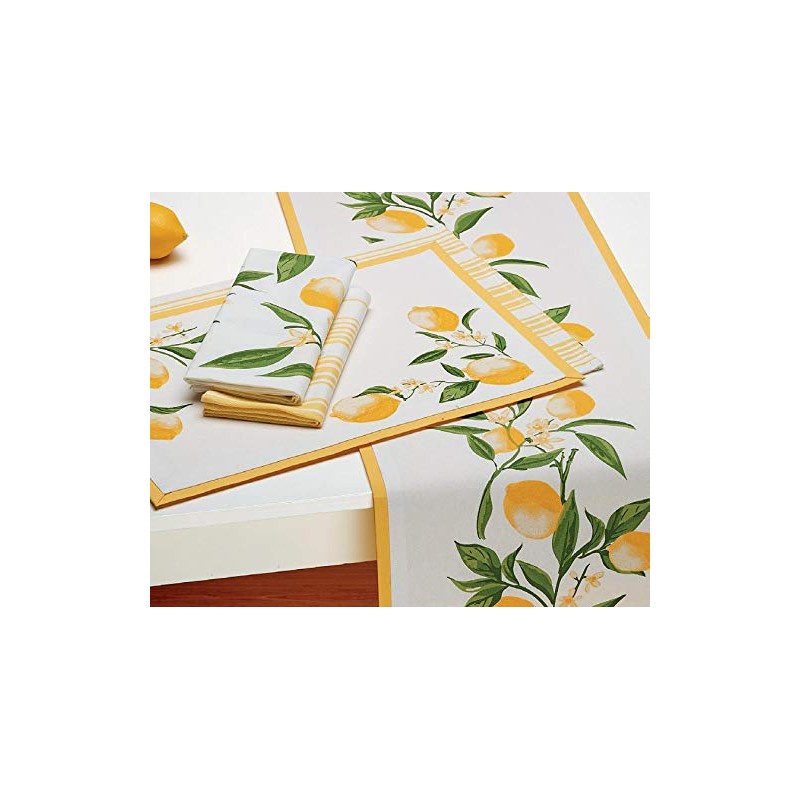Design Imports Lemon Bliss Table Linens, 20-Inch by 20-Inch Napkin, Lemon Zest Stripe