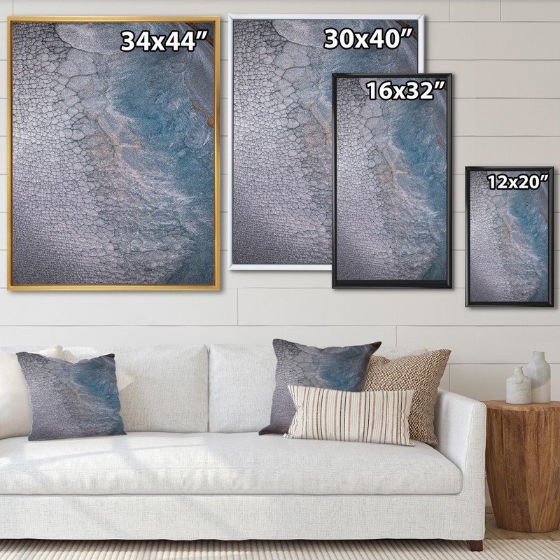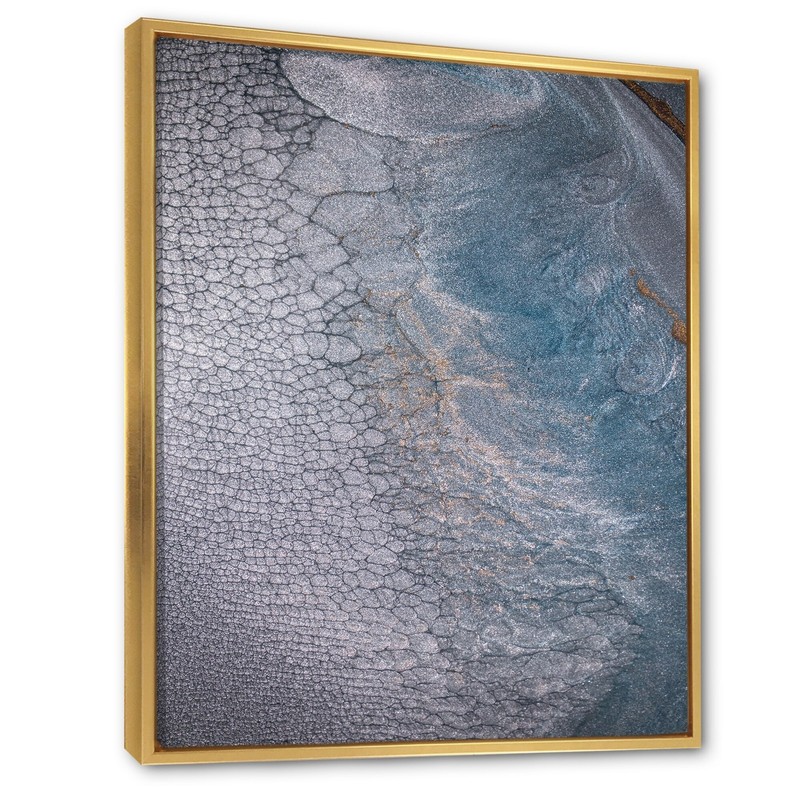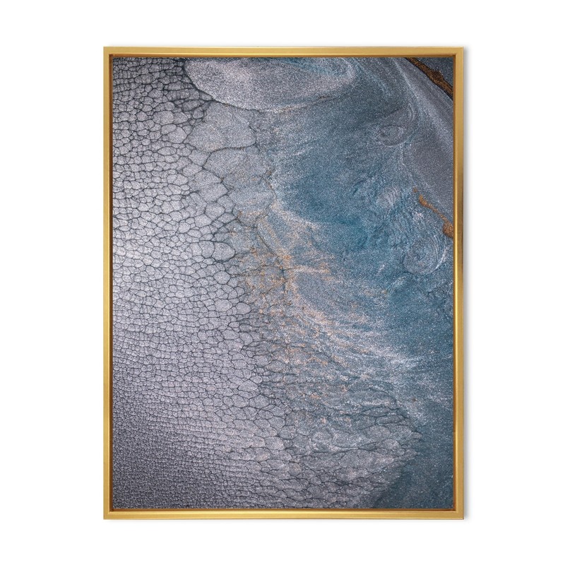 Designart "Luxury Grey And Blue Fluid Art IV" Abstract Framed Canvas Wall Art