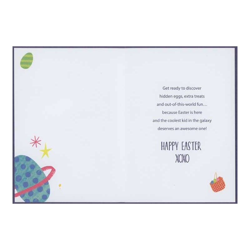 Designer Greetings Astronaut Bunny Floating in Space with Egg Shaped Planets Juvenile Easter Card for Young Great-Grandson