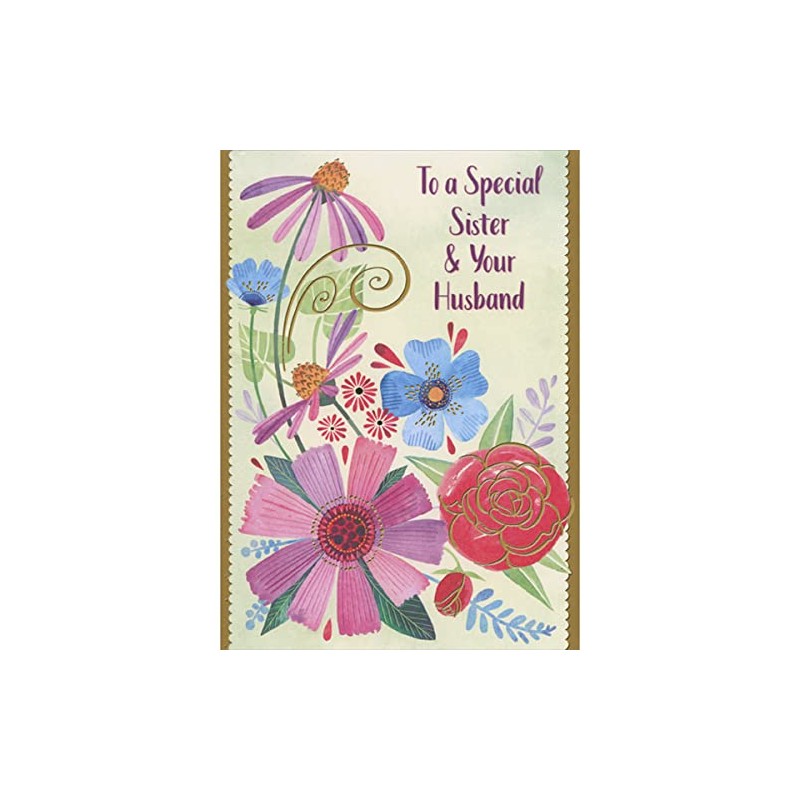 Designer Greetings Purple, Blue and Red Flowers with Gold Foil Accents, Swirls and Borders Easter Card for Sister and Husband (Brother-in-Law)
