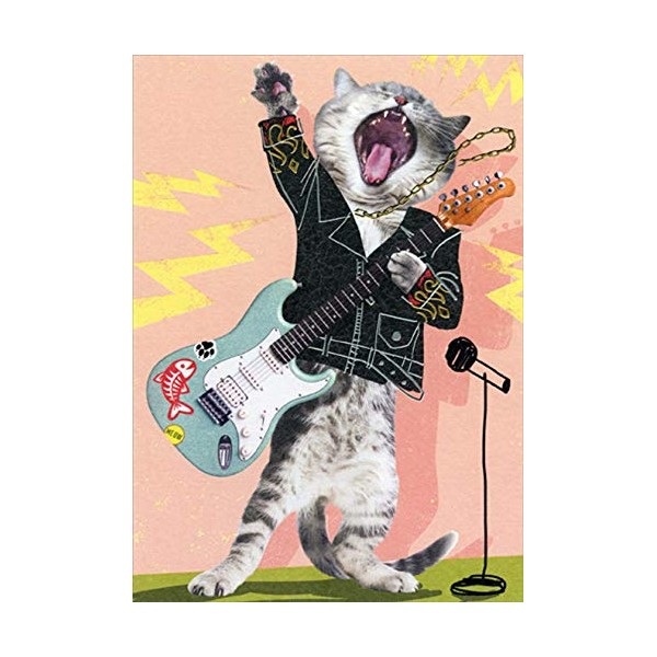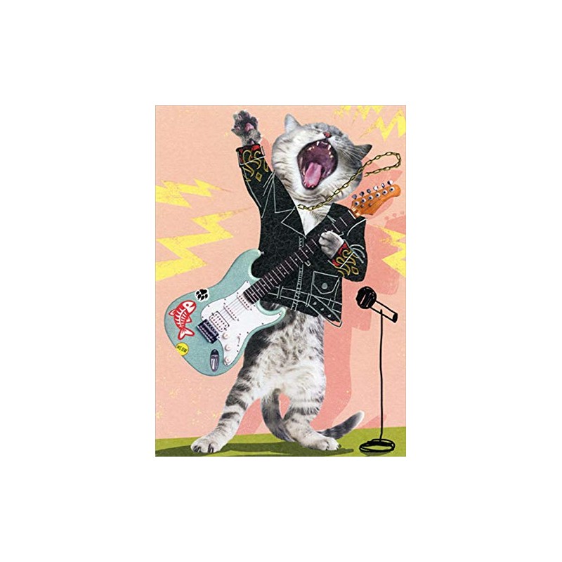 Designer Greetings Rock Star Cat with Blue Guitar Funny/Humorous Birthday Card