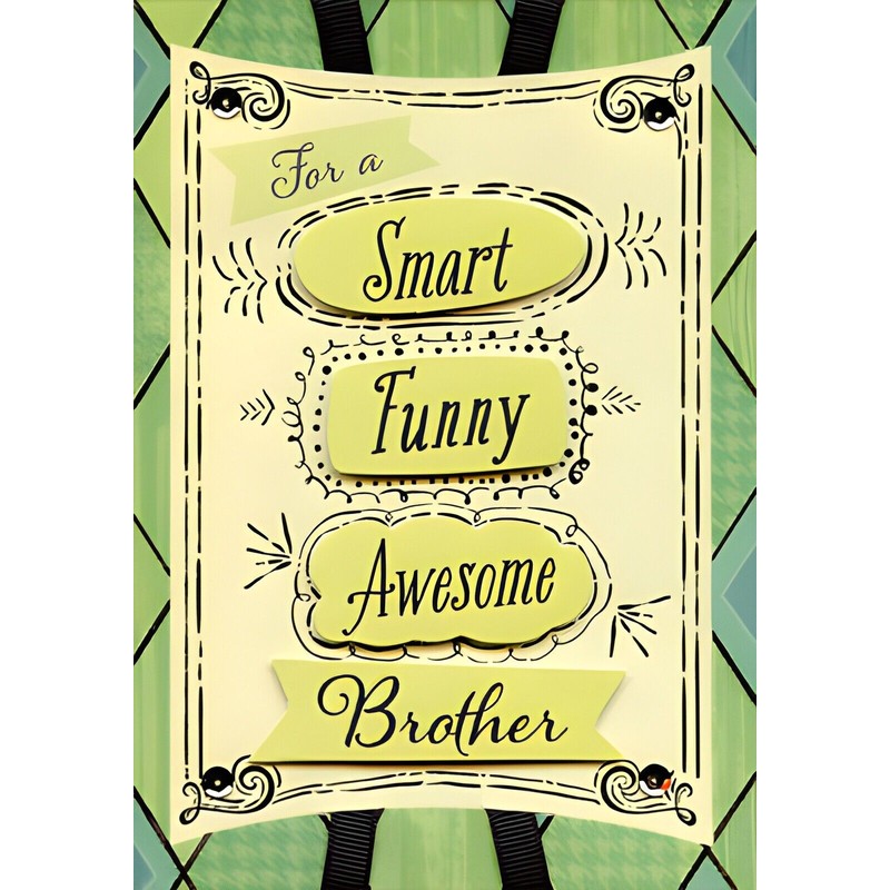 Smart, Funny, Awesome 3D Tip On Banners Hand Decorated Designer Boutique Keepsake Birthday Card for Brother