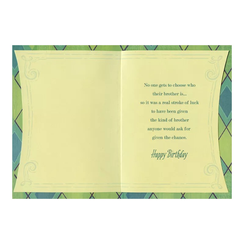 Inside Message: No one gets to choose who their brother is… so it was a real stroke of luck to have been given the kind of brother anyone would ask for given the chance. Happy Birthday