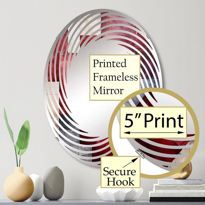 DesignQ Abstract Shapes with Maroon Mosaics - Abstract Shapes Spiral Abstract - 20x30 Inches - Oval Decorative Wall Mirror for Bathroom, Bedroom, Entryway, Living Room, Vanity Room and Modern Décor