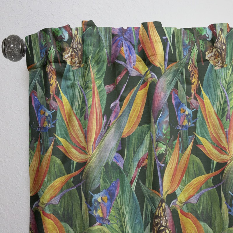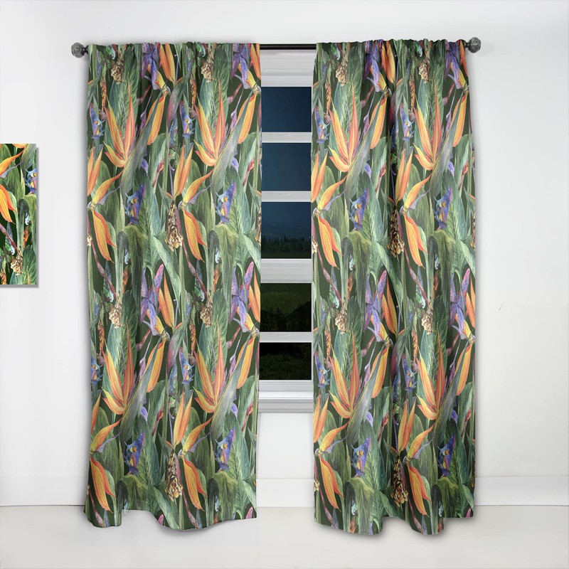 DesignQ Curtains 'Tropical Pattern with Exotic Flowers' Curtains for Bedroom, Curtains for Living Room, Curtains & Drapes - Thermal Insulated - Single Panel-52x120