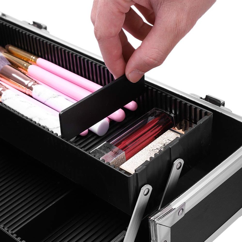 - LARGE STORAGE CAPACITY – Spacious compartments hold palettes, brushes, skincare, nail tools, and tattoo kits. Stay organized whether at the salon or on location.