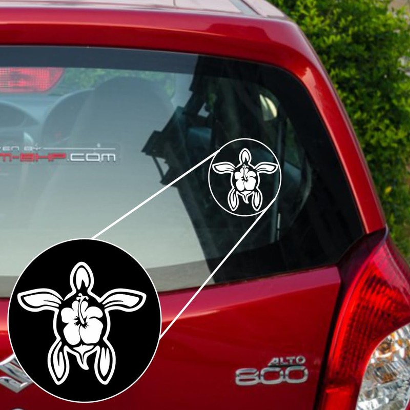 DesignsForrest DF Hibiscus Turtle Decal Sticker |5X5.2Inches | Premium Quality White Vinyl; Car Turtle Decal; Vehicle Bumper Sticker; Outdoor Vinyl Sticker
