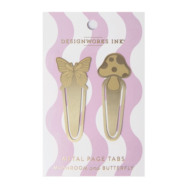 DesignWorks Ink Set of 2 Brass Page Tabs - Mushrooms & Butterfly