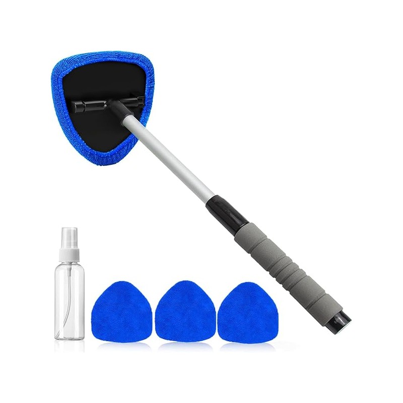 desin Windshield Cleaning Tool, Car Window Cleaner Windshield Cleaner with 4 Reusable and Washable Microfiber Pads and Extendable Handle Auto Inside Glass Wiper Kit