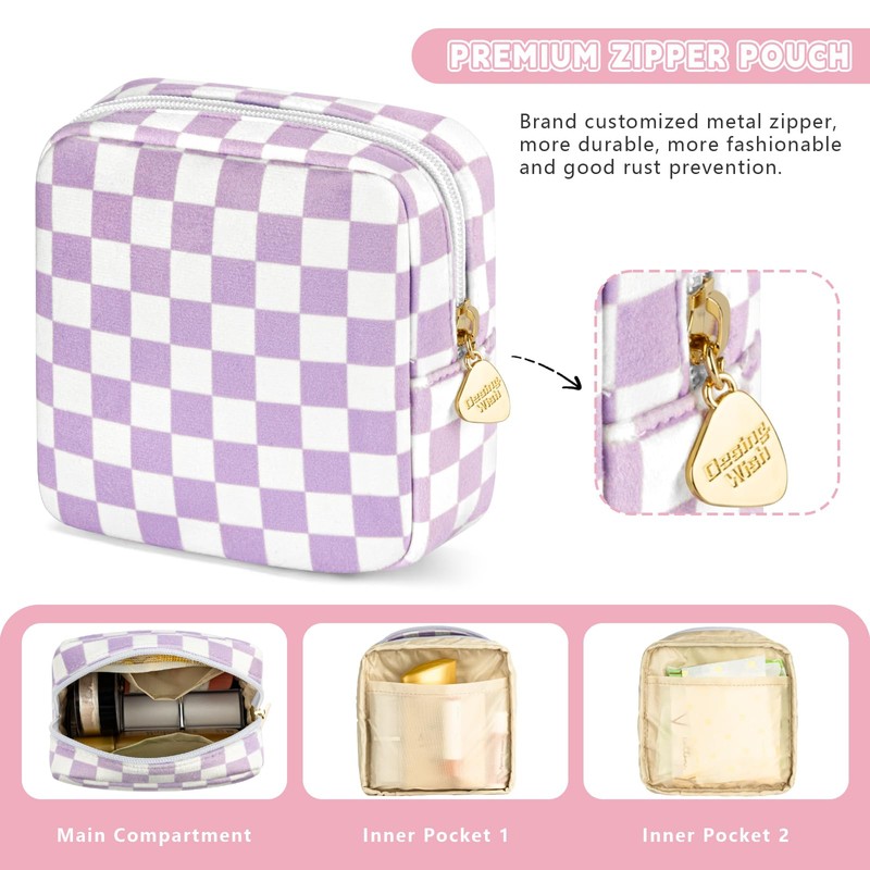 Desing Wish Women's Make Up Bag Small, Pink and Black Checkerboard Pattern - ...