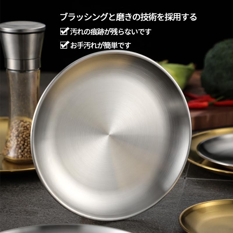 Desirable Stainless Steel Round Plate, Small Plate, Dinner Plate, Stainless Steel Tray, Round (9.1 inches (23 cm), Gold Set of 3