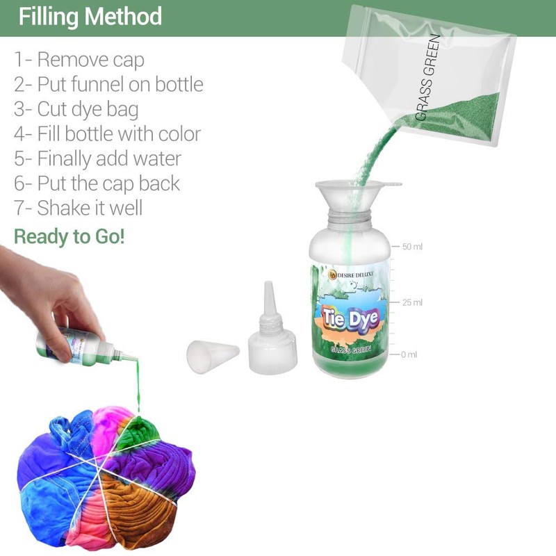 - Fully Certified Complete Kit - Package Include: 9 x Bottles, 9 x Dye Powder, 60 x Rubber bunds, 10 x Gloves, 1 x Reusable Surface Cover, 1 x Funnel, 1 x Manual