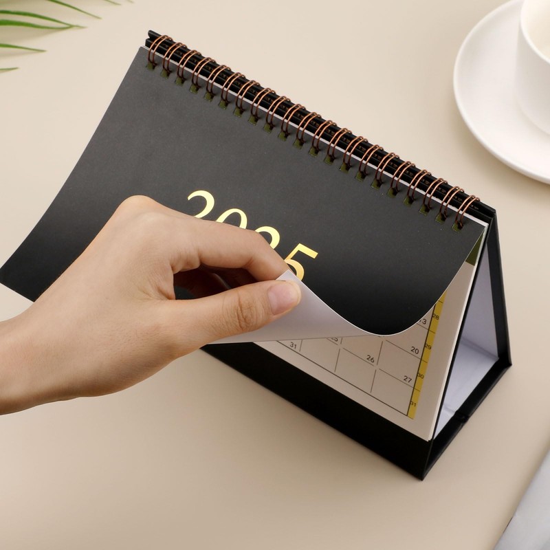 • Premium Material: The 2024-2025 desk calendar is made of quality thick paper, which is tough and reliable. Its double-wire binding and thickened cardboard stand make the calendar more supportive, easier to flip, and very reliable.